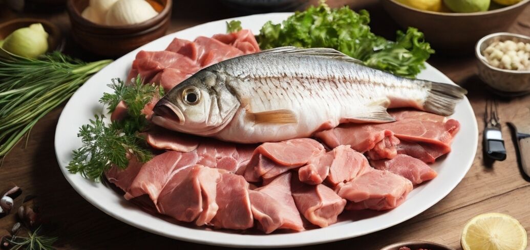 Белковые продукты: яйца, нежирное мясо, разная рыба, бобовые и грибы.