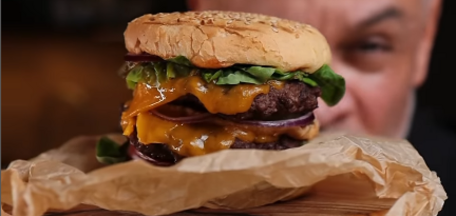 Огромный бургер: нереально сочный, хрустящий