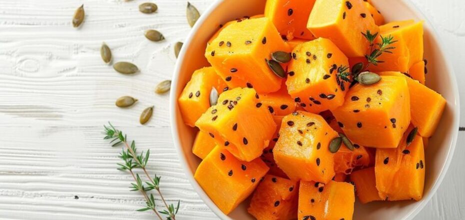 На обід оздоровіть свою шкіру хрусткими смаженими кубиками солодкої картоплі, помішаними в оливковій олії.