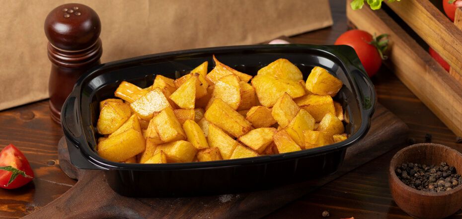 3. Покласти картоплю в гарячу олію, посолити, поперчити.