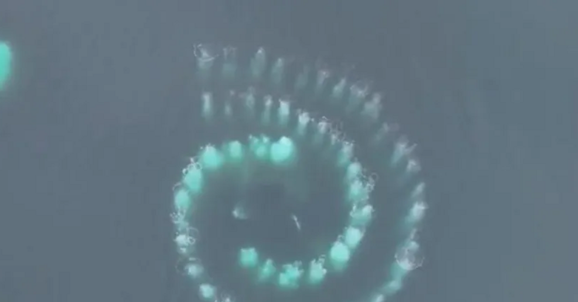 Зазвичай під час цього процесу поверхні води утворюються кола, але цього разу кити плавали по спіралі синхронно друг з одним. В результаті з'явилася геометрична фігура із золотим перетином.