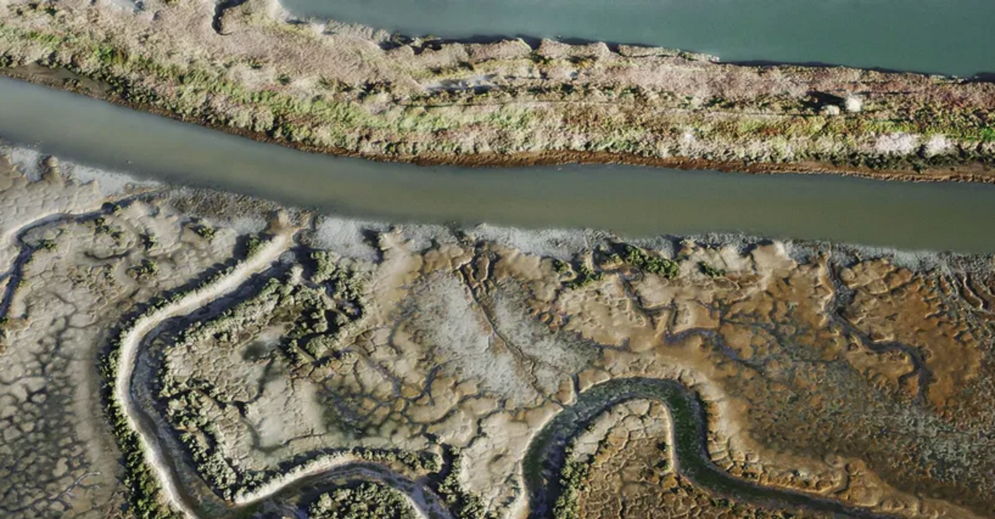 "Візуально це було вражаюче", — каже вона. І в той момент вона вирішила простежити за відновленням затоки протягом тривалого періоду. Почала з того, що раз на рік піднімалася в повітря, щоб сфотографувати соляні ставки. Потім прийшов Covid-19, і не змогла вилетіти, вона почала експериментувати зі зйомкою з рівня землі і навіть під водою.